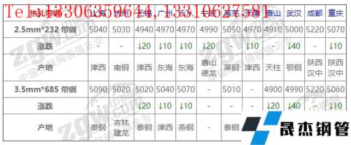 全國(guó)12個(gè)主要市場(chǎng)2.5mm*232 帶鋼平均價(jià)格5013元/噸,較上個(gè)交易日下調(diào)10元/噸。